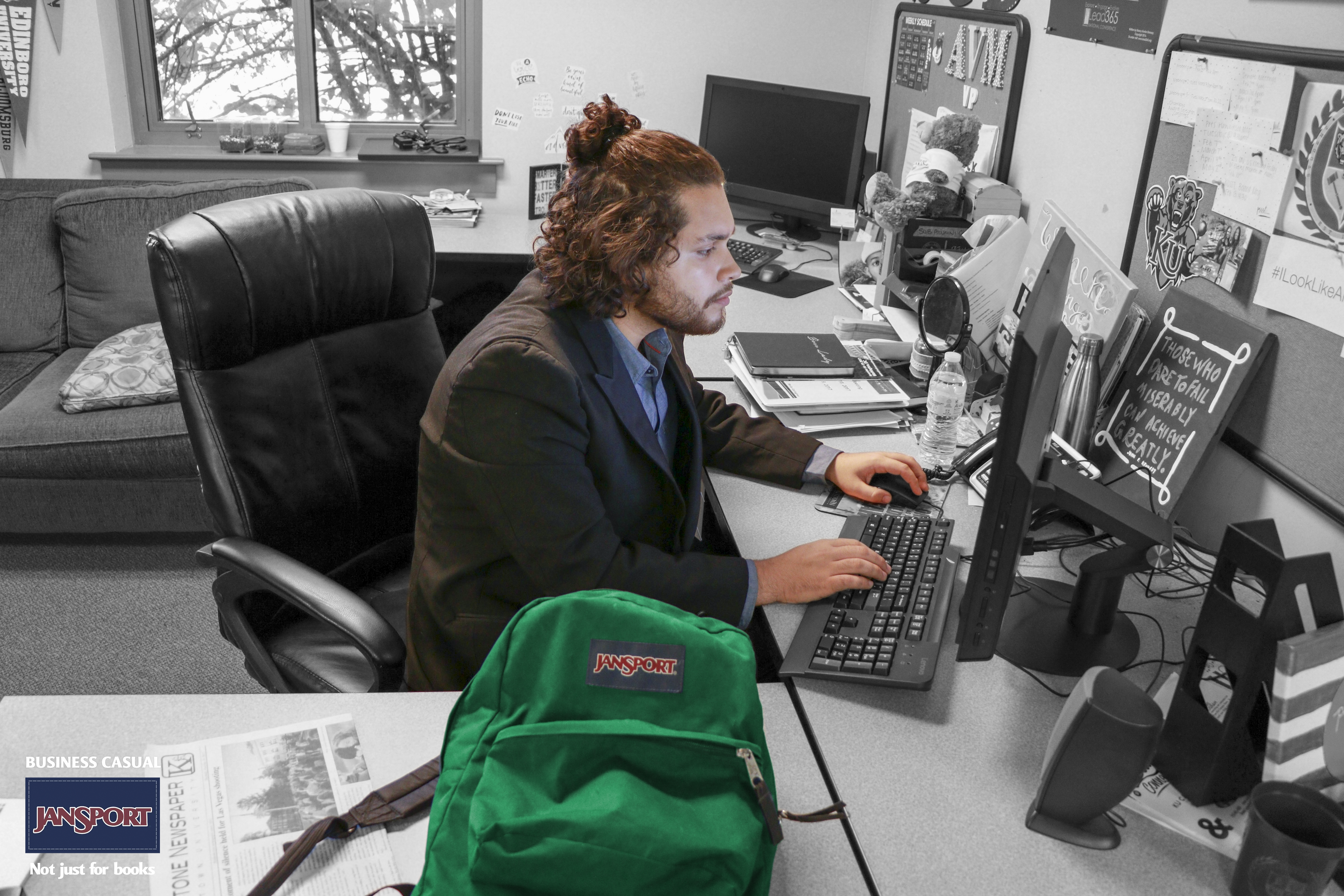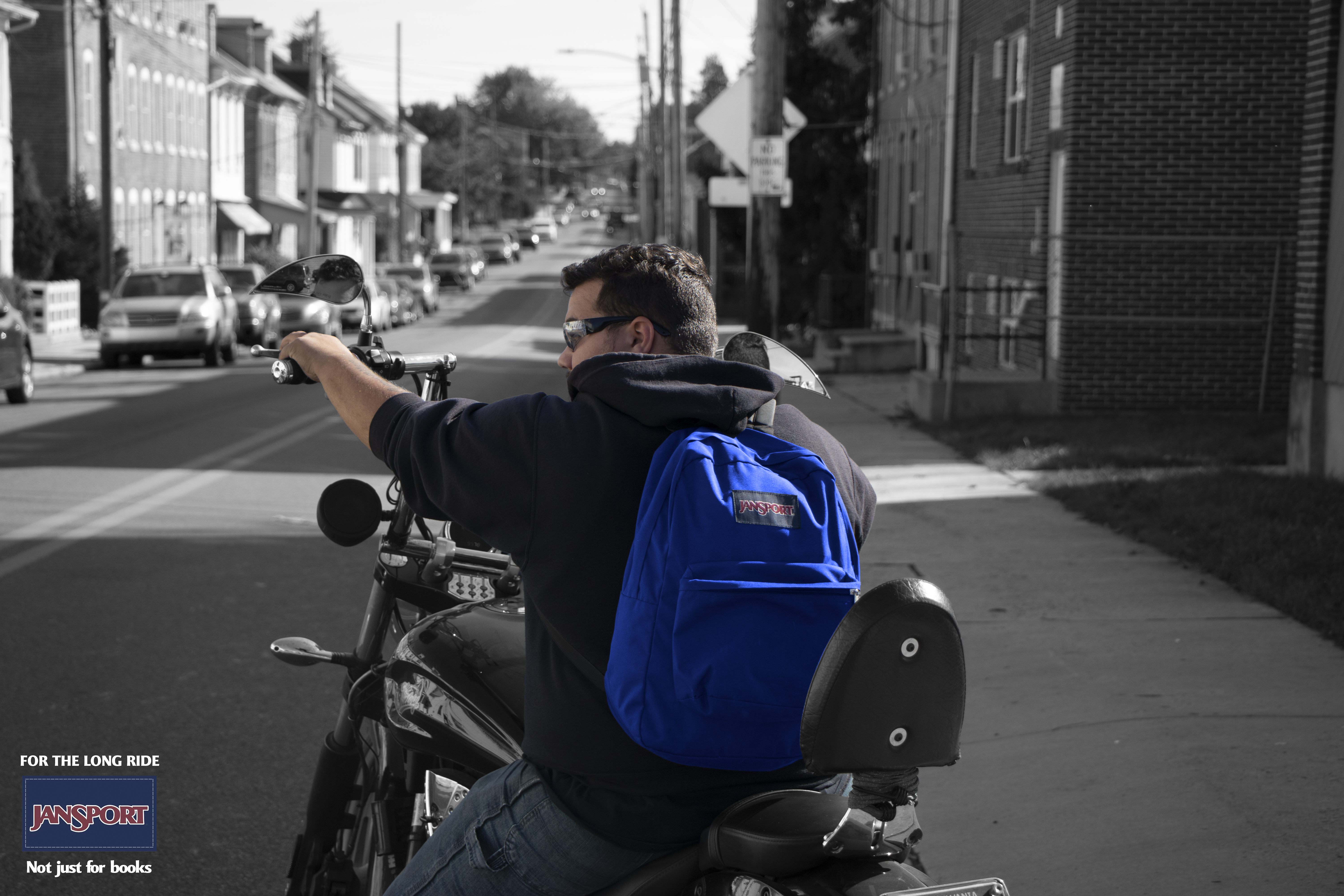 The subject of this campaign was to show Jansport bookbags are for more than just school children. The visuals create scenes of people where the bags for reasons other than holding books—such as a Businessman, a Biker and even a Grandma. I chose to shoot photos of as close to real life as possible. For the Photos, I wanted to capture what they would naturally do with the bag or how they would hold it in their possession. I manipulated the color in the photos to have the focus on the bags.